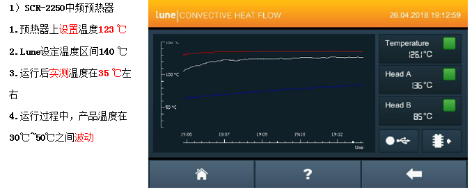 1.中頻預(yù)熱器SCR-2250溫度設(shè)定值(140℃)與Lune測溫儀實測值(35℃)偏差較大,且運行過程中產(chǎn)品溫度存在波動,預(yù)熱實際溫度過低可能導(dǎo)致擠出工序產(chǎn)品質(zhì)量問題